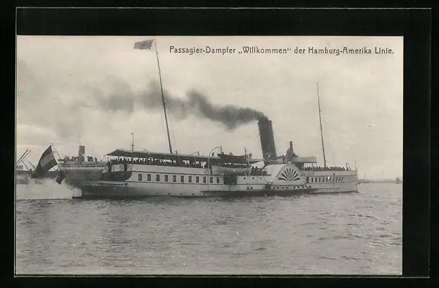 AK Passagier-Dampfer Willkommen der H.-A.-Linie in voller Fahrt