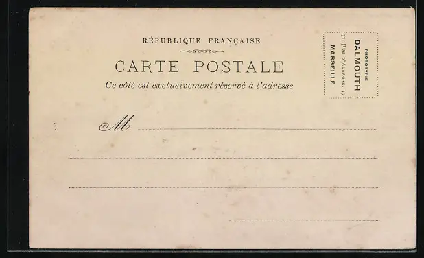 Personenbezogene Daten auf der Rückseite der Karte wurden durch blauen Textmarker unkenntlich gemacht. Die blauen Stellen sind auf die Vorderseite durchgeweicht und wirken sich negativ auf das Postkartenfoto aus
