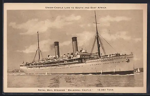 AK Passagierschiff Balmoral Castle der Union-Castle Line beim Auslaufen