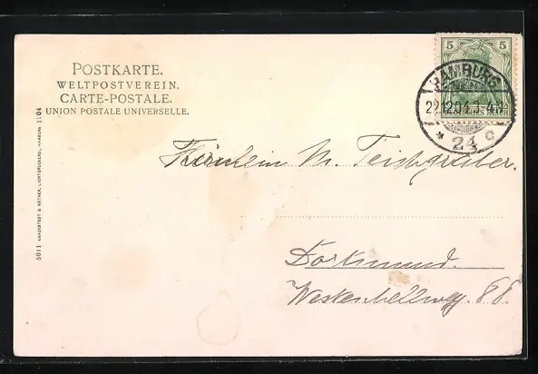 alte Ansichtskarte, gelaufen 1904, rückseitig Oberflächenschaden, guter Zustand