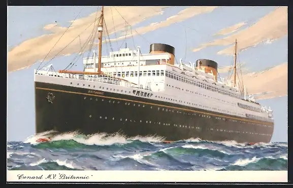 AK Passagierschiff Britannic bei leichtem Wellengang, Cunard Line