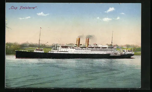 AK Passagierschiff Cap Finisterre vor einer Küste