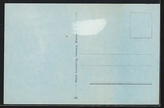Personenbezogene Daten auf der Rückseite der Karte wurden durch blauen Textmarker unkenntlich gemacht. Die blauen Stellen sind auf die Vorderseite durchgeweicht und wirken sich negativ auf das Postkartenfoto aus