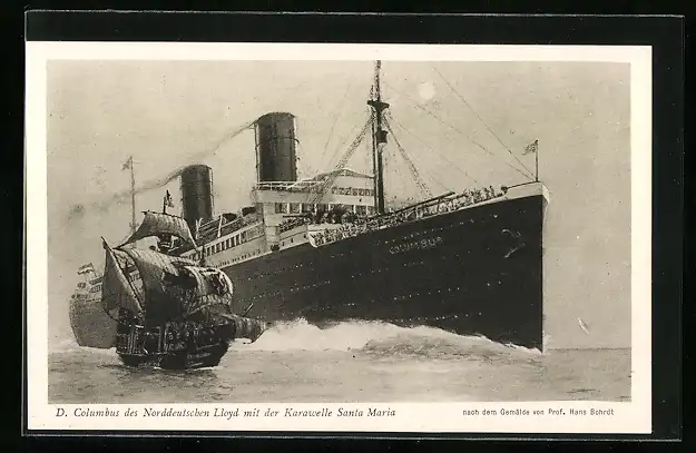 AK Passagierschiff Columbus des Nordd. Lloyds mit Columbus-Caravelle