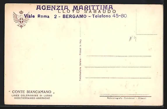 AK Passagierschiff Conte Biancamano, Lloyd Sabaudo