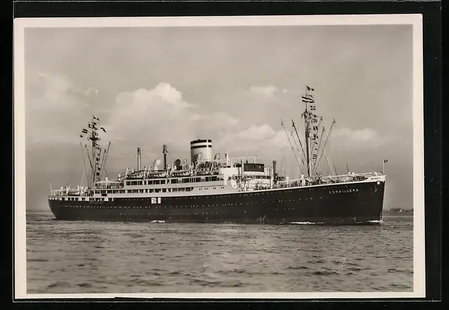 AK Passagierschiff Cordillera in Flaggengala auf hoher See