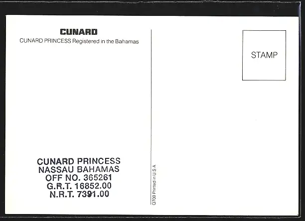 AK Passagierschiff Cunard Princess vor einer kleinen Felsinsel
