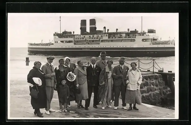 AK Passagierschiff Danmark, an Land eine Reisegruppe