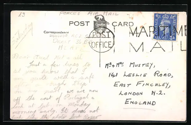 Personenbezogene Daten auf der Rückseite der Karte wurden durch blauen Textmarker unkenntlich gemacht. Die blauen Stellen sind auf die Vorderseite durchgeweicht und wirken sich negativ auf das Postkartenfoto aus