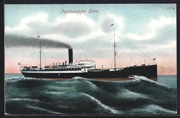 AK Passagierschiff Esne in Fahrt durch starken Wellengang