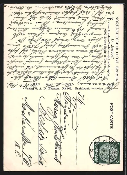 AK Passagierschiff Europa in Fahrt, Norddeutscher Lloyd