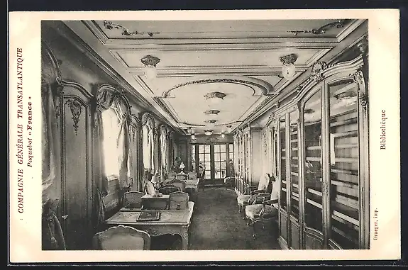 AK Passagierschiff France, Compagnie Générale Transatlantique, Bibliothèque
