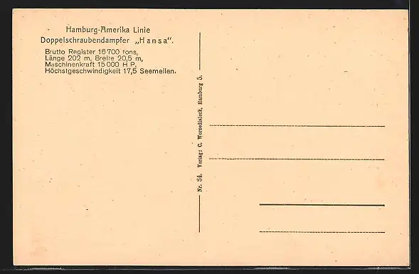 AK Passagierschiff Hansa in ruhiger See, Hamburg-Amerika-Linie