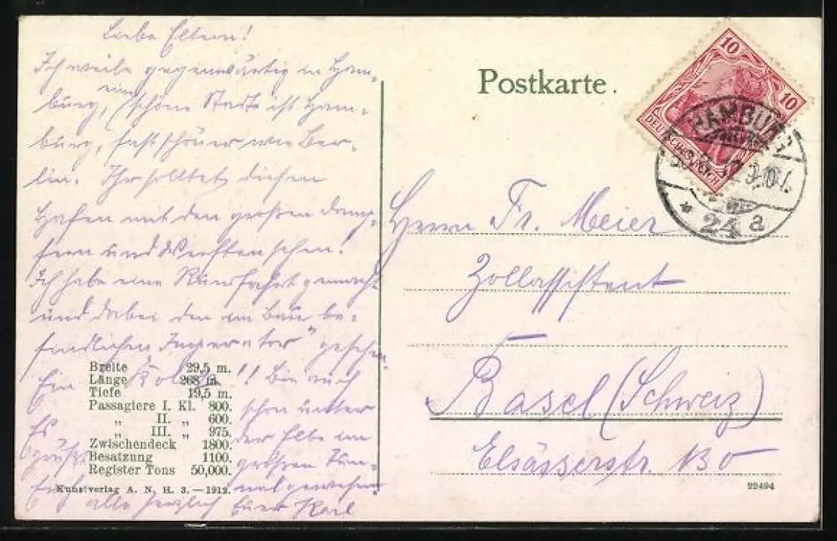 gelaufen 1912, guter Zustand