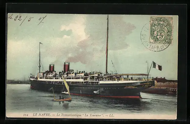 AK Passagierschiff La Touraine vor Le Havre