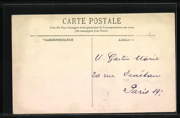 Personenbezogene Daten auf der Rückseite der Karte wurden durch blauen Textmarker unkenntlich gemacht. Die blauen Stellen sind auf die Vorderseite durchgeweicht und wirken sich negativ auf das Postkartenfoto aus