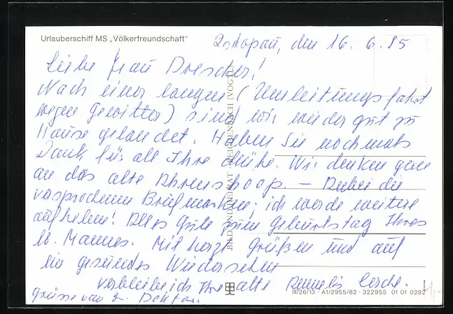 AK Passagierschiff M. S. Völkerfreundschaft auf hoher See