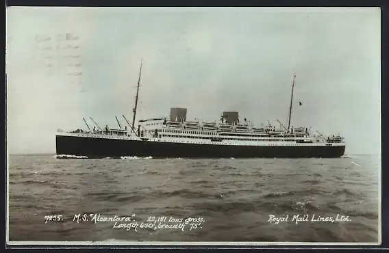 AK Passagierschiff MS Alcantara auf See, Royal Mail Lines Ltd.