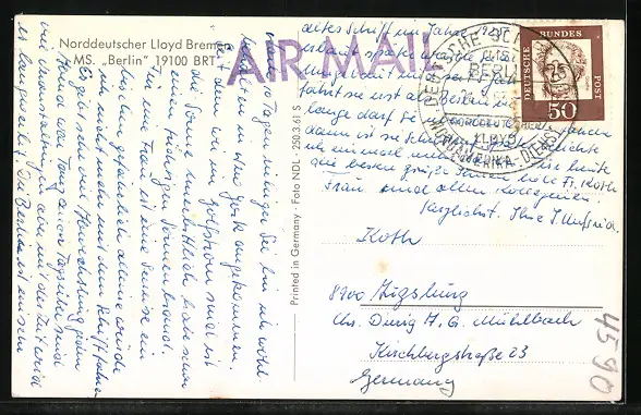 AK Passagierschiff MS Berlin des Norddeutschen Lloyds aus der Vogelschau