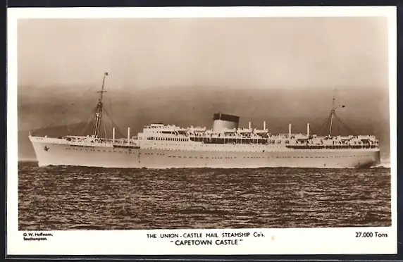 AK Passagierschiff MS Capetown Castle auf dem Meer, Union-Castle Line