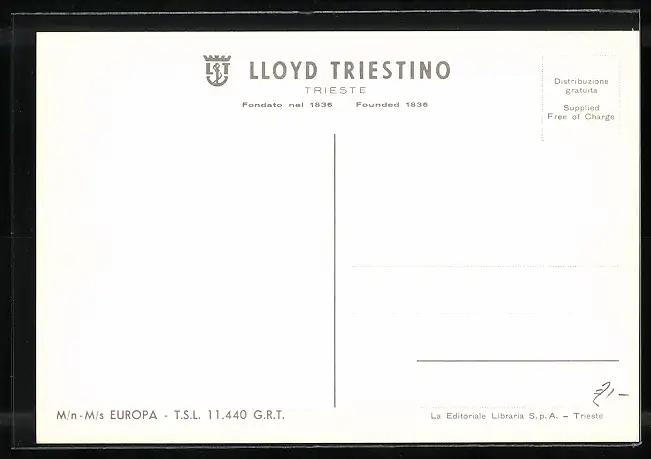 AK Passagierschiff MS Europa auf hoher See, Lloyd Triestino