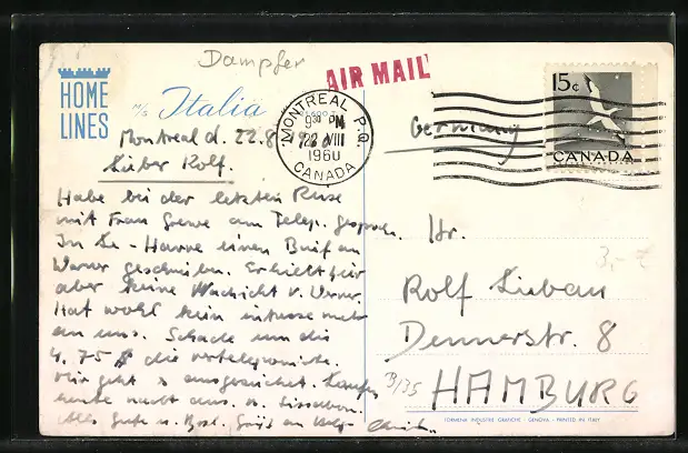 AK Passagierschiff MS Italia der Home Lines auf hoher See