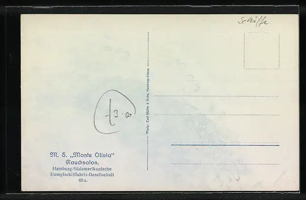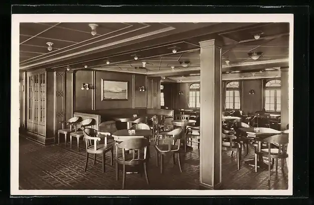 AK Passagierschiff M.S. Monte Olivia, Innenansicht des Rauchsalons