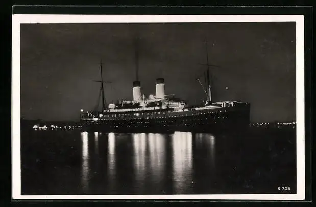 AK Passagierschiff MS Monte Pascoal mit nächtlicher Beleuchtung