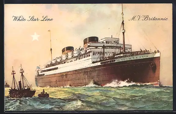 AK Passagierschiff M.V. Britannic in voller Fahrt, White Star Liner