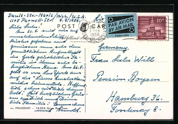 alte Ansichtskarte, gelaufen 1958, Abriebspur li. mittig, guter Zustand