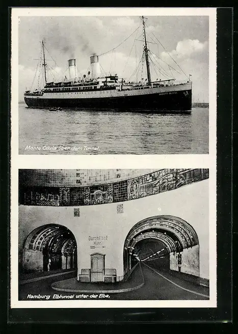 AK Passagierschiff Monte Olivia über dem Elbtunnel