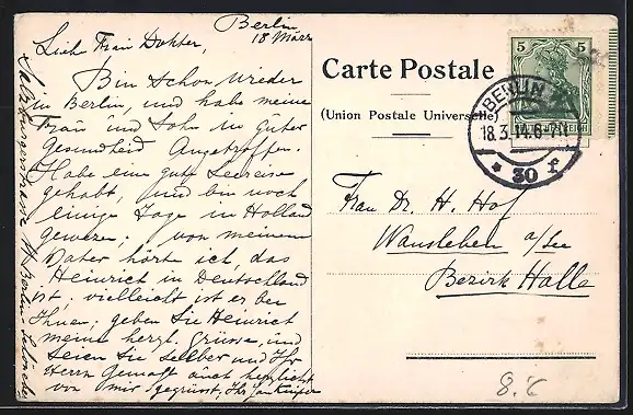 alte Ansichtskarte, gelaufen 1914, Stempelspur, Eckknicke unten, guter Zustand