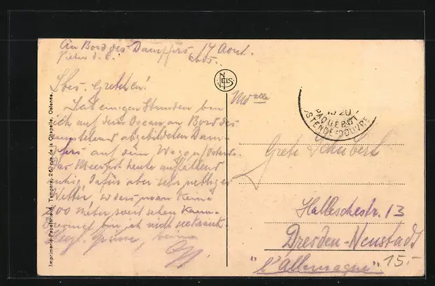 alte Ansichtskarte, gelaufen, Briefmarke entfernt, Stempelspur, guter Zustand