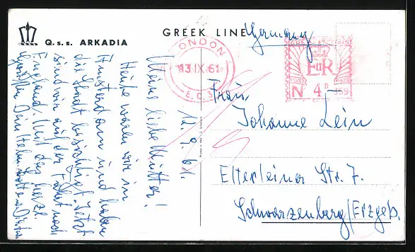 AK Passagierschiff Q. s. s. Arkadia, Greek Line