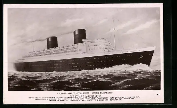 AK Passagierschiff Queen Elizabeth in voller Fahrt