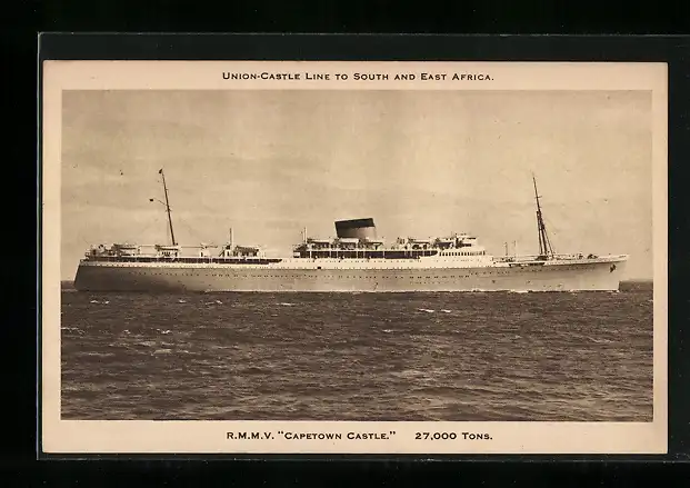 AK Passagierschiff RMMV Capetown Castle auf hoher See, Union-Castle Line