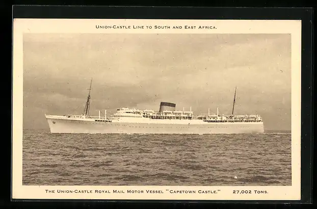 AK Passagierschiff RMMV Capetown Castle auf hoher See, Union-Castle Line