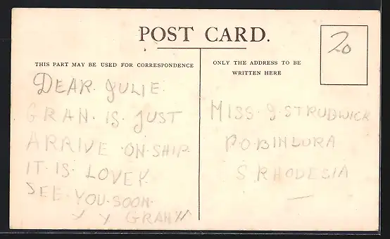 Personenbezogene Daten auf der Rückseite der Karte wurden durch blauen Textmarker unkenntlich gemacht. Die blauen Stellen sind auf die Vorderseite durchgeweicht und wirken sich negativ auf das Postkartenfoto aus