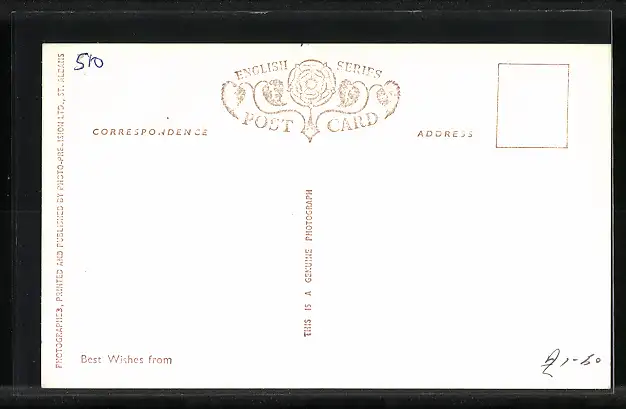 Personenbezogene Daten auf der Rückseite der Karte wurden durch blauen Textmarker unkenntlich gemacht. Die blauen Stellen sind auf die Vorderseite durchgeweicht und wirken sich negativ auf das Postkartenfoto aus