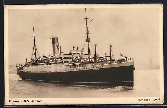 AK Passagierschiff RMS Andania vor der Stadt, Cunard Line