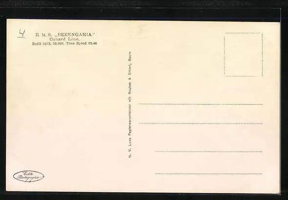 AK Passagierschiff RMS Berengaria der Cunard Line in voller Fahrt