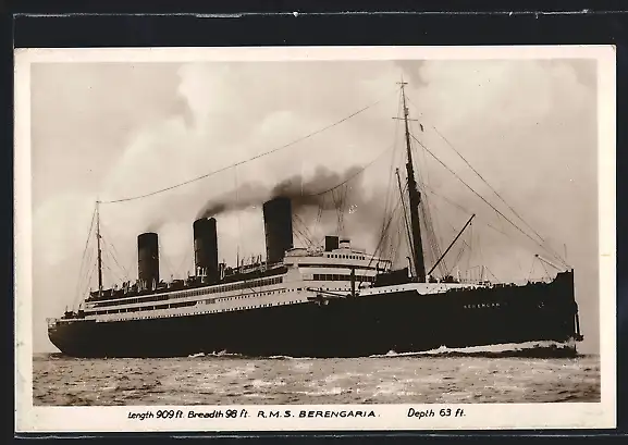 AK Passagierschiff RMS Berengaria in voller Fahrt