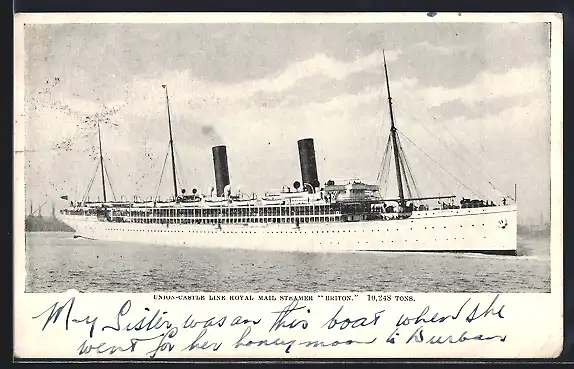 AK Passagierschiff RMS Briton vor der Küste, Union-Castle Line