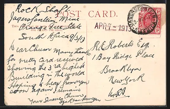 alte Ansichtskarte, gelaufen 1913, Eckknicke re., guter Zustand