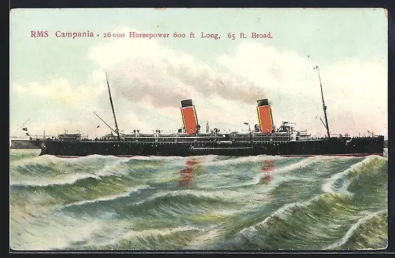 AK Passagierschiff RMS Campania bei rauem Wellengang