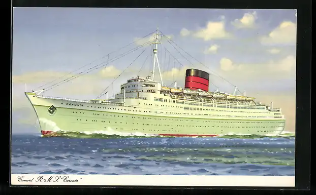 AK Passagierschiff R.M.S. Caronia auf hoher See, Cunard Line
