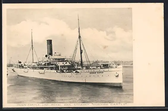 AK Passagierschiff RMS Durham Castle vor der Küste, Union Castle Line