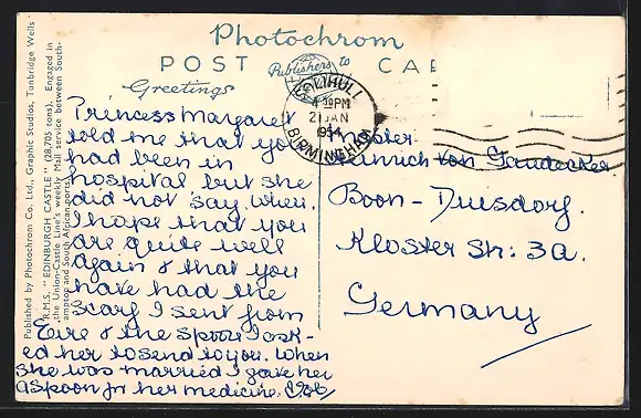 alte Ansichtskarte, gelaufen 1954, Briefmarke entfernt, guter Zustand
