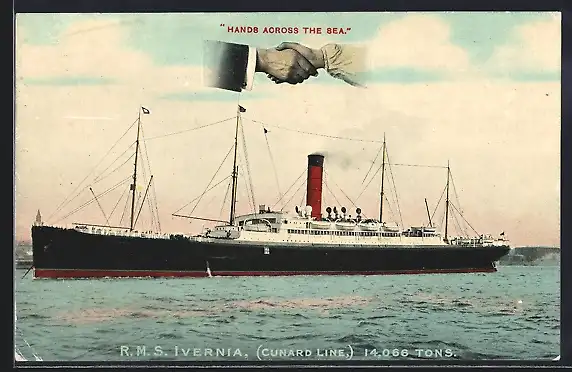 AK Passagierschiff RMS Ivernia vor der Küste vor Anker, Cunard Liner