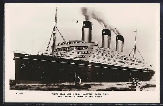 AK Passagierschiff RMS Majestic auf See, White Star Line